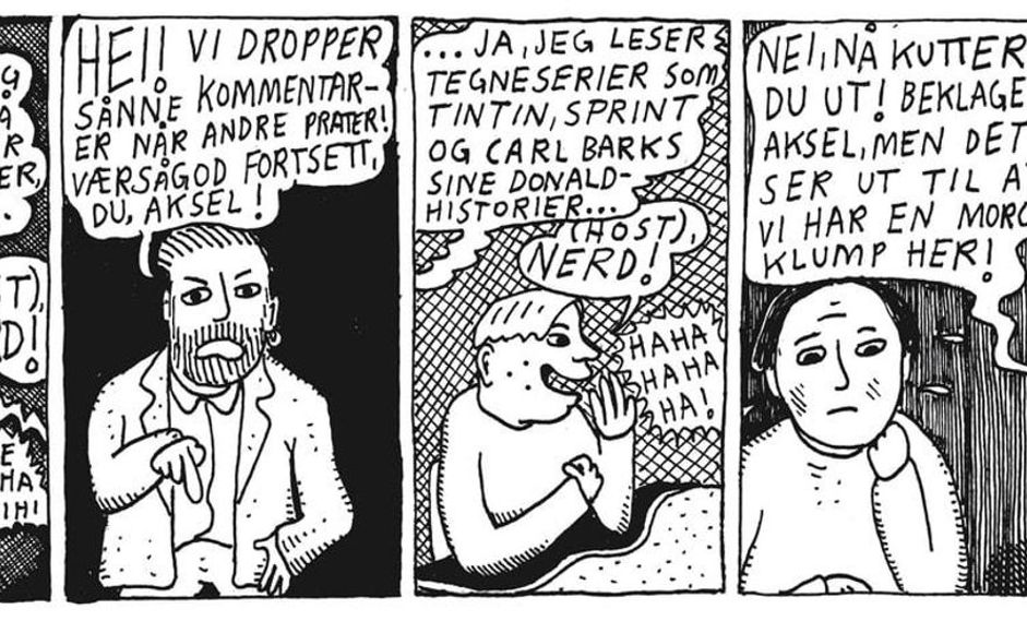 Hovedpersonen i Ungdomsskolen blir stemplet som nerd fordi han leser tegneserier, og nevner klassikere som Tintin, Sprint og Carl Barks' Donald-historier som sine favoritter. Jeg er usikker på om dette tegneserie-synet fortsatt dominerer blant dagens unge, men jeg skulle ønske jeg hadde bedre kjennskap til tegneserier da jeg var tenåring. Og at jeg visste at tegneserier også kan være god trøst, både i møte med den ubarmhjertige puberteten og med en verden som tilsynelatende har gått av hengslene.