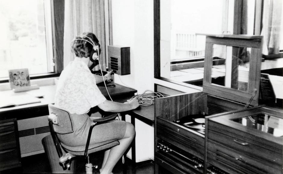 Musikkavdelingen åpnet 15 mai. 1968. Her ved Marit Andreassen