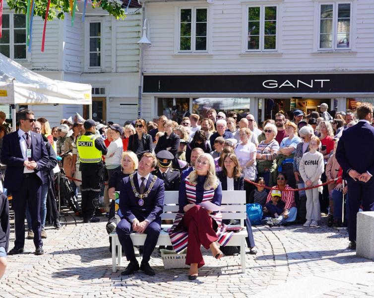 Foto: 900 X HURRA 7. juni, H.K.H. Kronprinsesse Mette-Marit fikk æren av å forsegle kapselen til boka om framtiden under en seremoni på Arneageren.