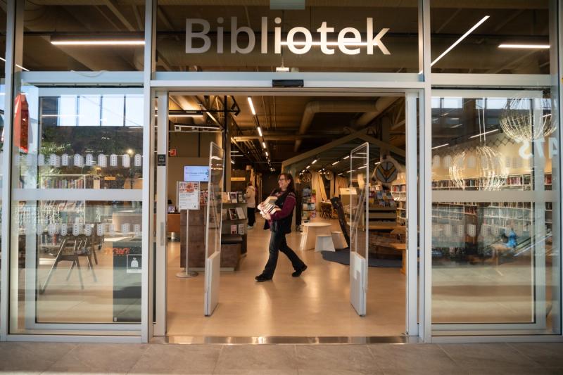 Foto: Inngangen til Madla bibliotek.