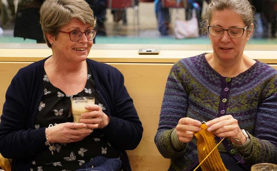 Her kan du lære å strikke, få hjelp hvis du står fast, strikke sammen med andre og slå av en prat om løst og fast.